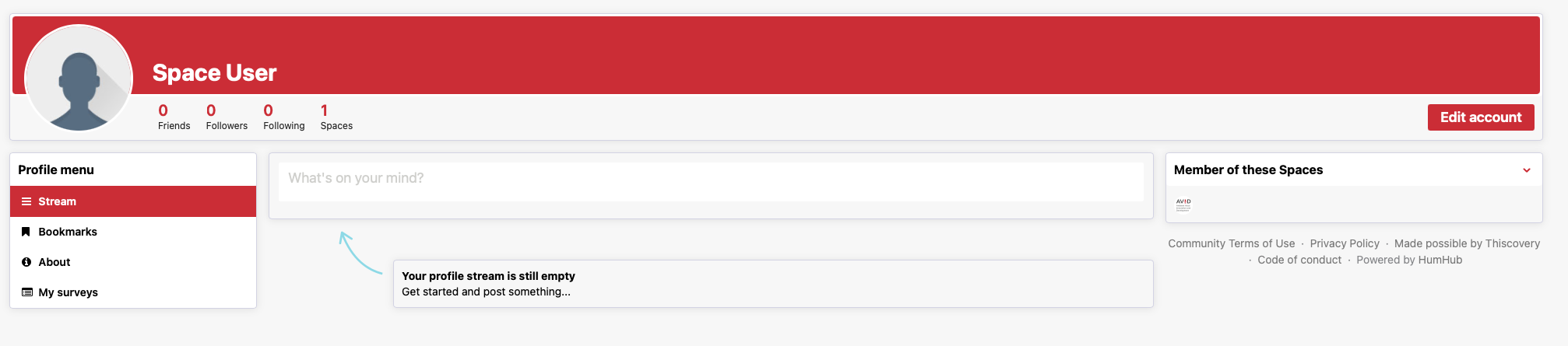 This is your home page. It shows recent posts and activities from spaces you belong to.